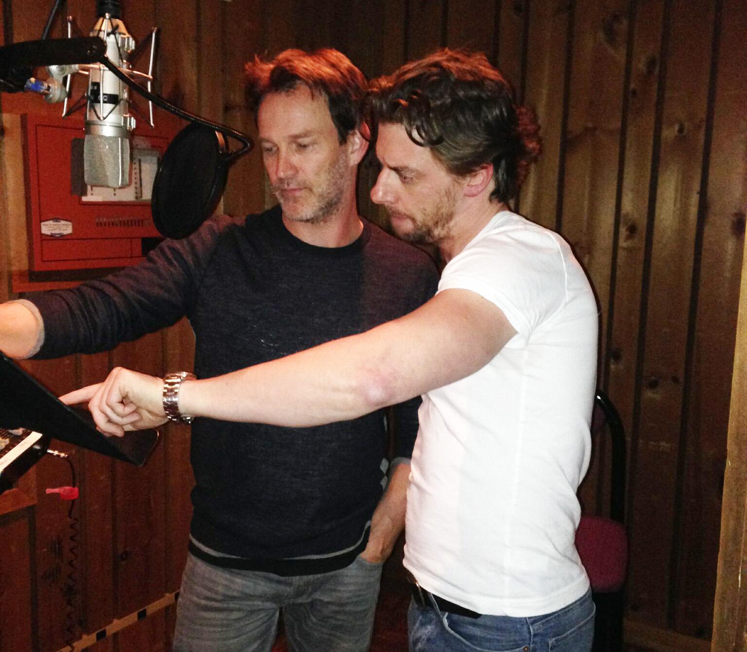 Our very first look at Captain Von Trapp himself in action recording the soundtrack for NBC's highly anticipated live TV adaptation of Rodgers & Hammerstein's THE SOUND OF MUSIC has finally arrived with the first shots of Stephen Moyer in the studio as has a cursory sneak peek at Tony Award-winning stage and screen star Christian Borle and the leading ladies, Carrie Underwoodand Audra McDonald, themselves, all hard at work in creating a whole new way to "Do Re Mi" for 2013. Photo from SOM's twitter. Source.